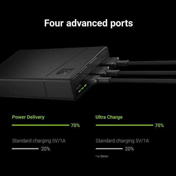 Powerbanka Green Cel PowerPlay20 20000mAh s rychlým nabíjením, 2x USB Ultra Charge a 2x USB-C