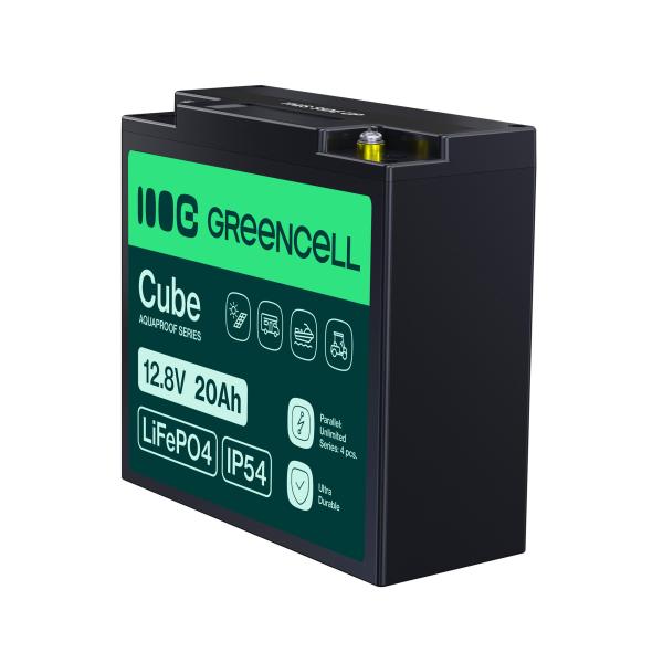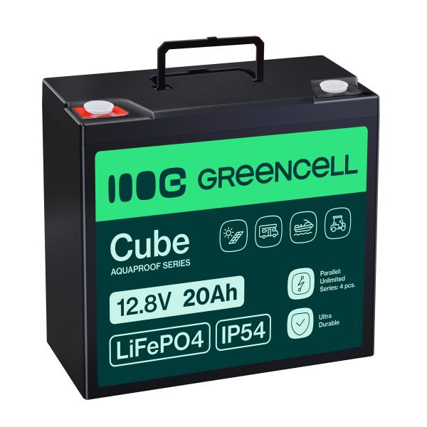 Green Cell CUBE LiFePO₄ 20Ah 12,8V (256Wh) je výkonná lithium-železo-fosfátová baterie navržená pro traktory, elektrická vozidla a další náročné aplikace. Vyniká dlouhou životností až 2000 cyklů, vysokou bezpečností, stabilním napětím a nízkou hmotností. Ideální volba pro spolehlivý a ekologický zdroj energie s minimální údržbou.