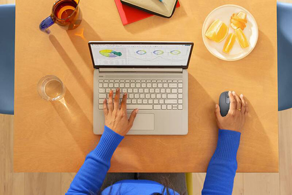 Přesné optické snímání pohybu a plynulý posuv řádek po řádku zajistí, že kurzor bude reagovat přesně a bez prodlev – a to téměř na jakémkoli povrchu.