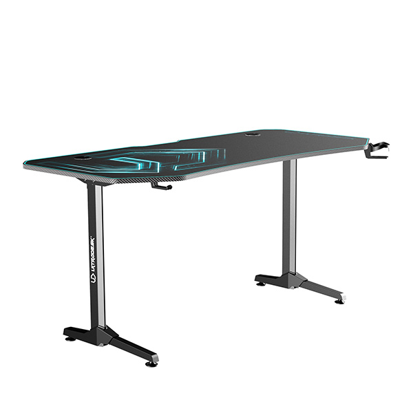 ULTRADESK Herní stůl FRAG XXL BLUE, 160 x 75 cm, 75 cm, držák nápojů a sluchátek, stojan BEAM, s celoplošnou XXL podložkou pod myš
