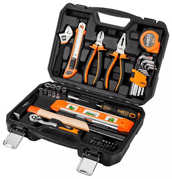 Sada nářadí NEO TOOLS představuje všestranné řešení pro profesionální řemeslníky i domácí kutily, kteří hledají spolehlivost, preciznost a dlouhou životnost. Celý komplet se skládá ze 60 pečlivě vybraných kusů, vyrobených z vysoce kvalitní chrom-vanadiové oceli (CrV), která je známá svou mimořádnou pevností, odolností vůči opotřebení a deformacím.