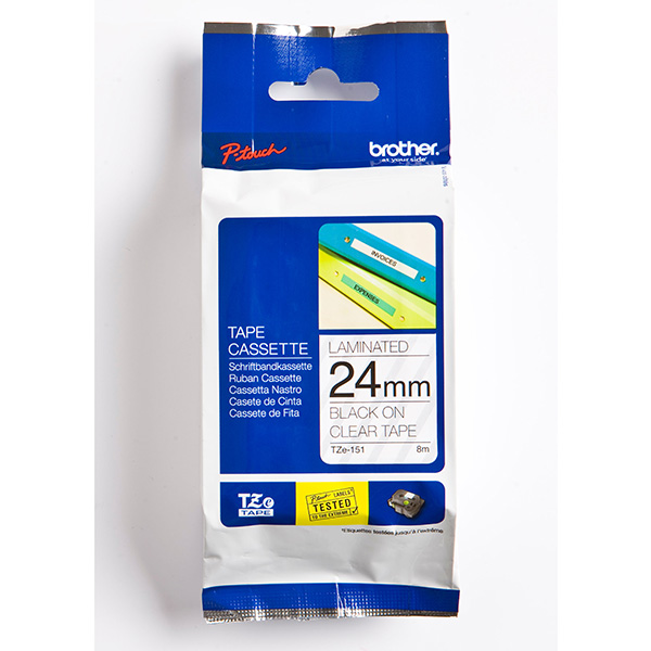 Brother originální páska do tiskárny štítků, Brother, TZE-151, černý tisk/průsvitný podklad, laminovaná, 8m, 24mm