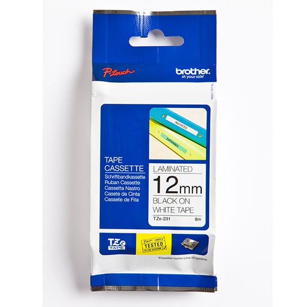 Brother originální páska do tiskárny štítků, Brother, TZE-231, černý tisk/bílý podklad, laminovaná, 8m, 12mm