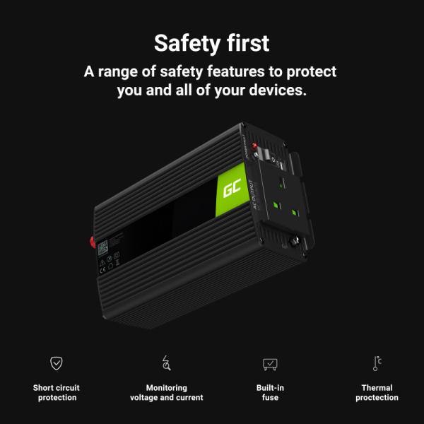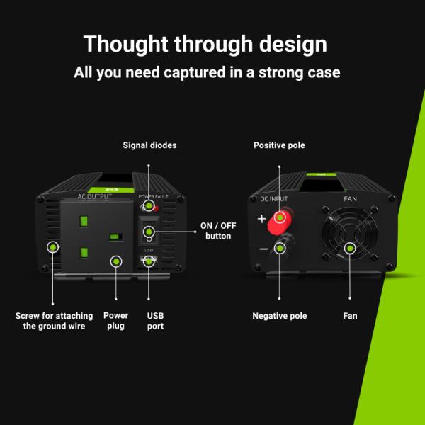Green Cell měnič napětí z 24V na 230V, 1000W/2000W, modifikovaný sinus, UK zásuvka