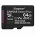 Kingston paměťová karta Canvas Select Plus, 64GB, micro SD, SDCS3/64GBSP, UHS-I U1 (Class 10), A1