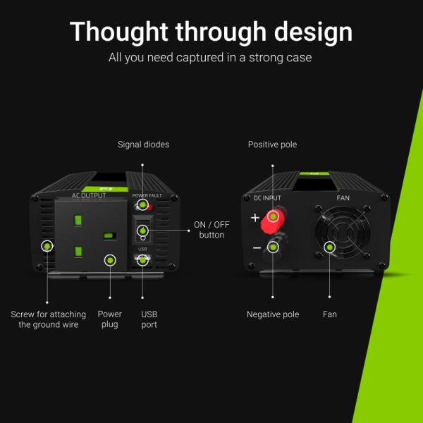 Green Cell měnič napětí z 24V na 230V, 500W/1000W, modifikovaný sinus, UK zásuvka