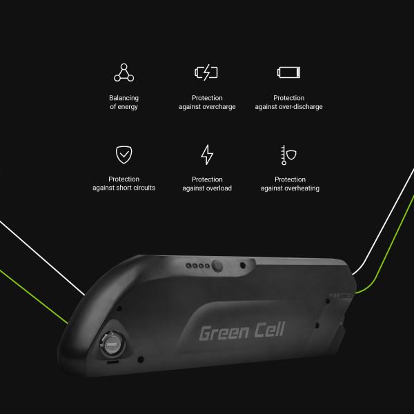 Green Cell baterie pro Elektrokola, 36 V, 13 Ah Li-Ion, Down Tube s nabíječkou.