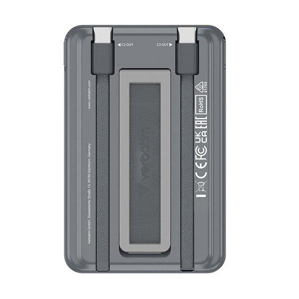 Verbatim, Power banka Charge ,n, Go se dvěma kabely, 5V, nabíjení telefonu, 32251, 5 000mAh, magnetické připevnění, šedá