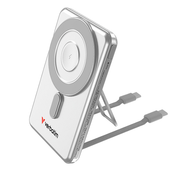 Verbatim, powerbanka s bezdrátovým nabíjením, 5V, nabíjení telefonu, 32276, 5 000mAh, magnetické připevnění, stříbrná