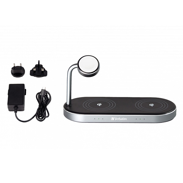 Verbatim, Duální nabíjecí podložka 3 v 1, pro dva telefony iPhone a hodinky Apple Watch, černá, 9V, 35W, Certifikace MFi a Qi, DOP