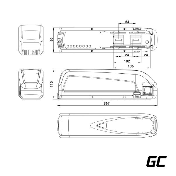 Green Cell Baterie pro Elektrokola Down Tube, 48V, 13000 mAh, 624 Wh