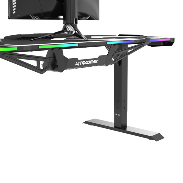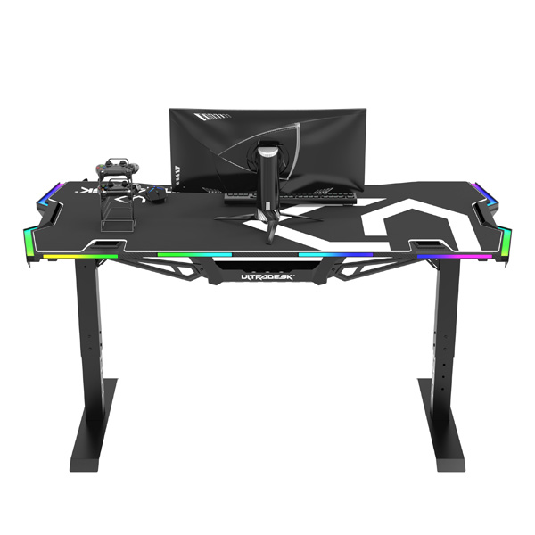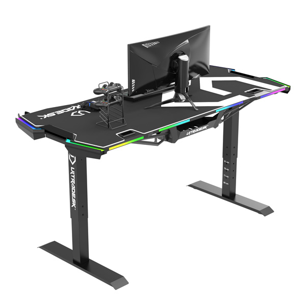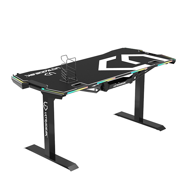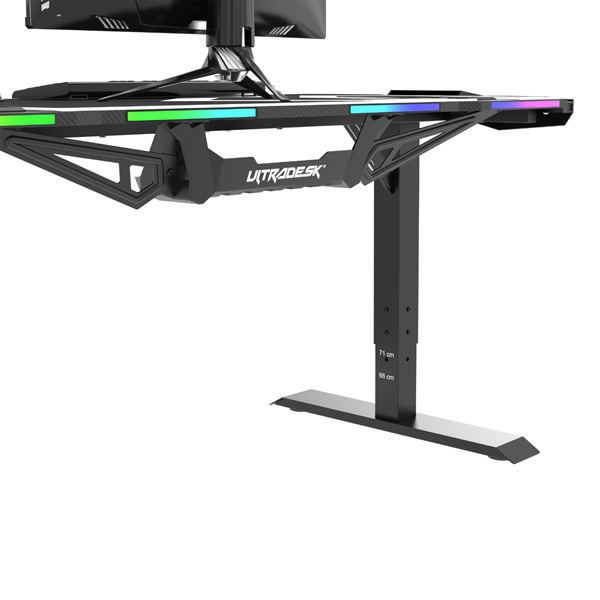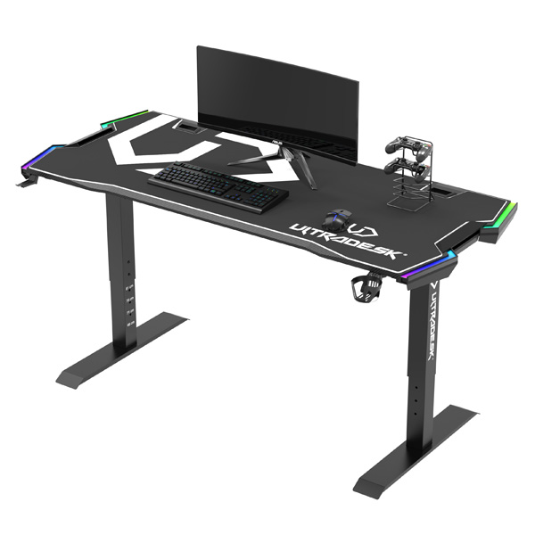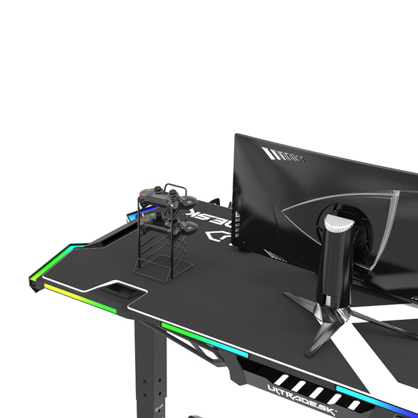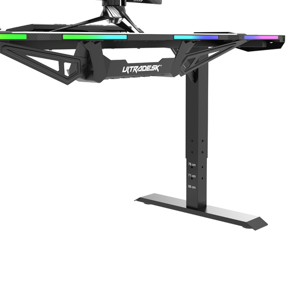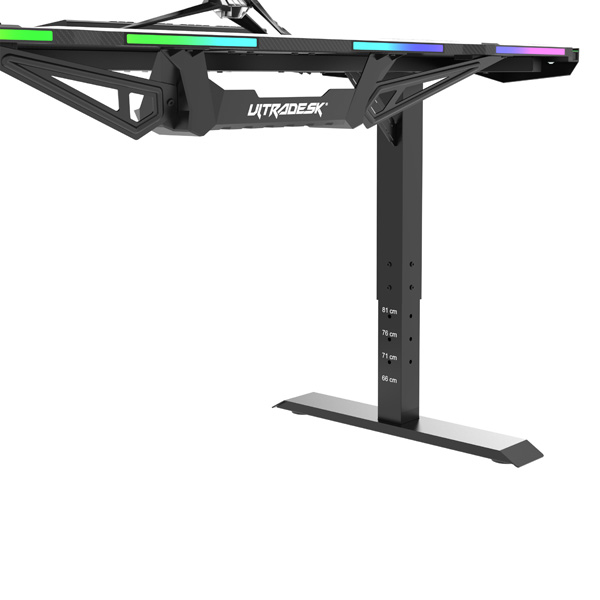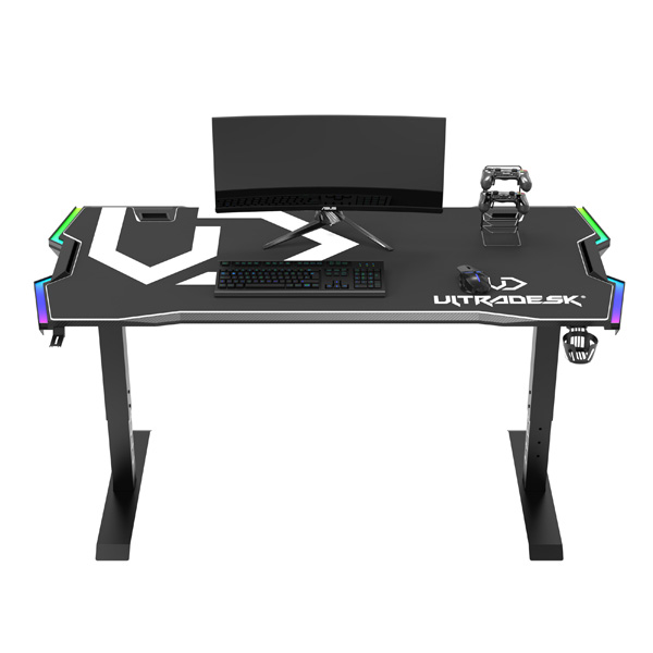ULTRADESK Herní stůl FORCE - černý, 166x70 cm, 66-86 cm, 5 úrovní výšky,s XXL podložkou pod myš, RGB podsvícení, DOPRODEJ