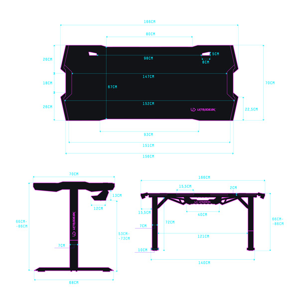 Výšku tohoto stolu lze snadno přizpůsobit vašim potřebám. ULTRADESK FORCE nabizí až 5 výškových úrovní, které nastavíte výběrem příslušného otvoru v nohách. Výškové úrovně se pohybují od 66 do 86 centimetrů. Nastavení navíc zabere pouze pár minut a nevyžaduje opětovnou montáž stolu. Rychle a snadno! A nastavitelné nožky ? V případě nerovnosti podlahy vám ULTRADESK kryje záda!