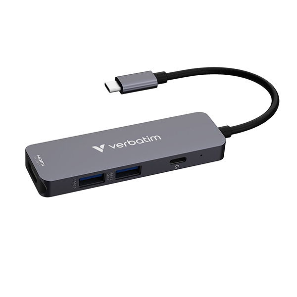 USB-C víceportový rozbočovač Essentials 4-port, 32155, šedý, délka kabelu 18cm, Verbatim, USB-C PD, USB-A 3.2 Gen 1, USB-A 2.0
