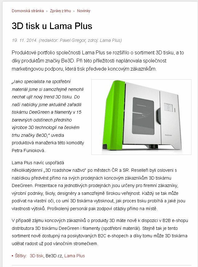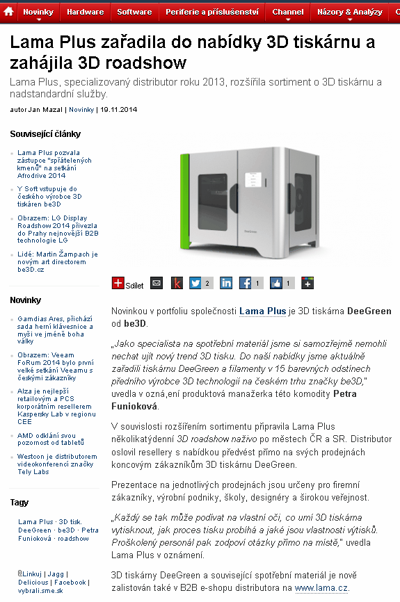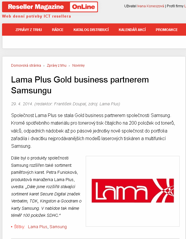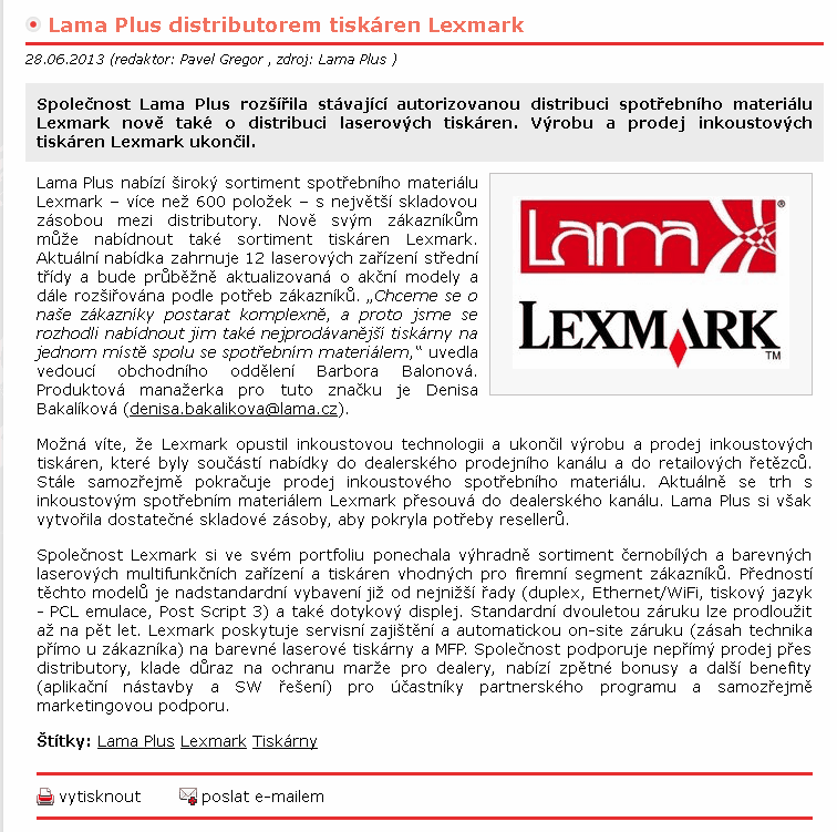 | 6/2013 - Feedit.cz - LAMA Plus získala distribuci tiskáren Lexmark | Náhled (110kB) |
