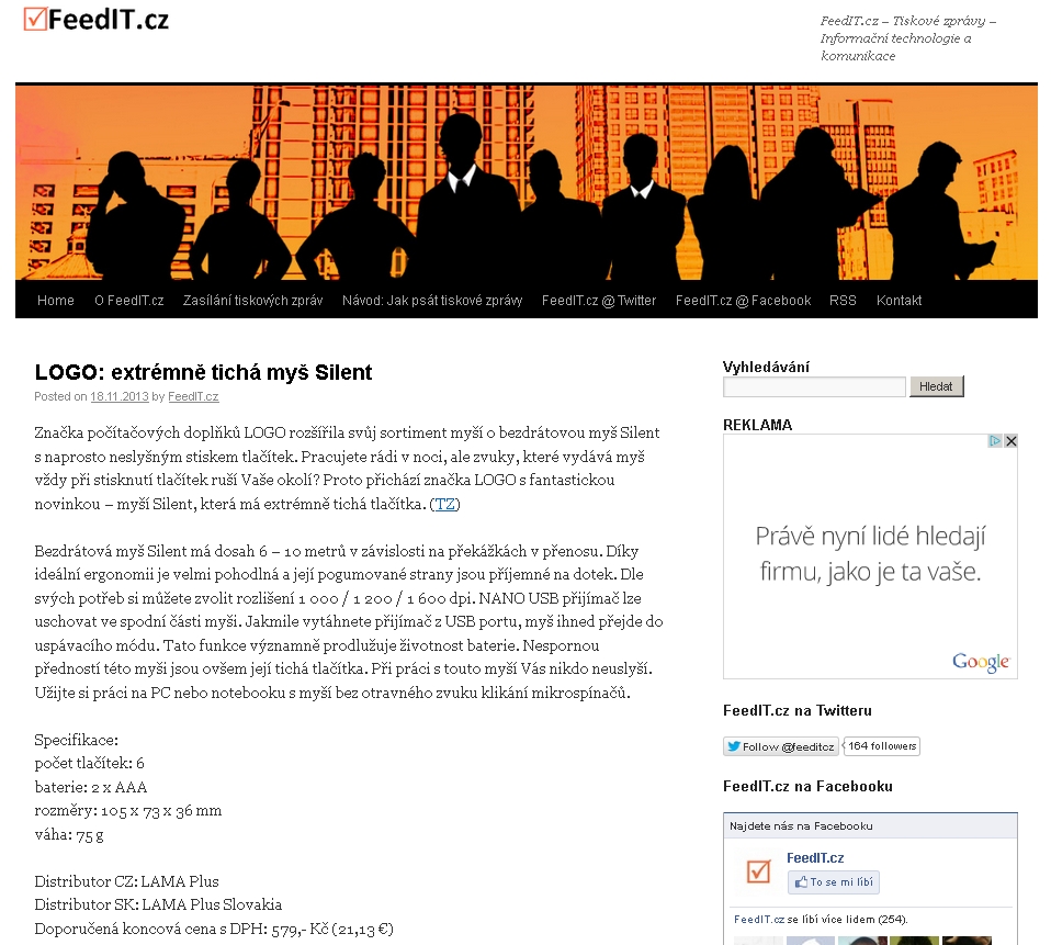 | 11/2013 - Feedit.cz - LOGO: extrémně tichá myš Silent |