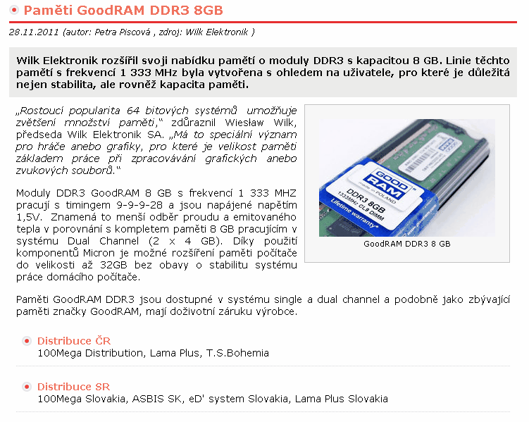 | 11/2011 - Reseller online - Paměti GoodRAM DDR3 8 GB | Náhled (47kB) |