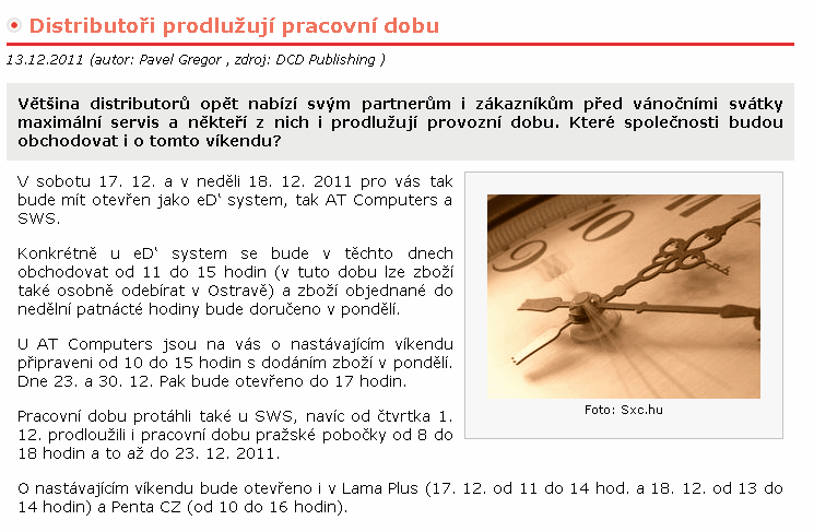 | 12/2011 - Reseller online - Distributoři prodlužují pracovní dobu | Náhled (45kB) |