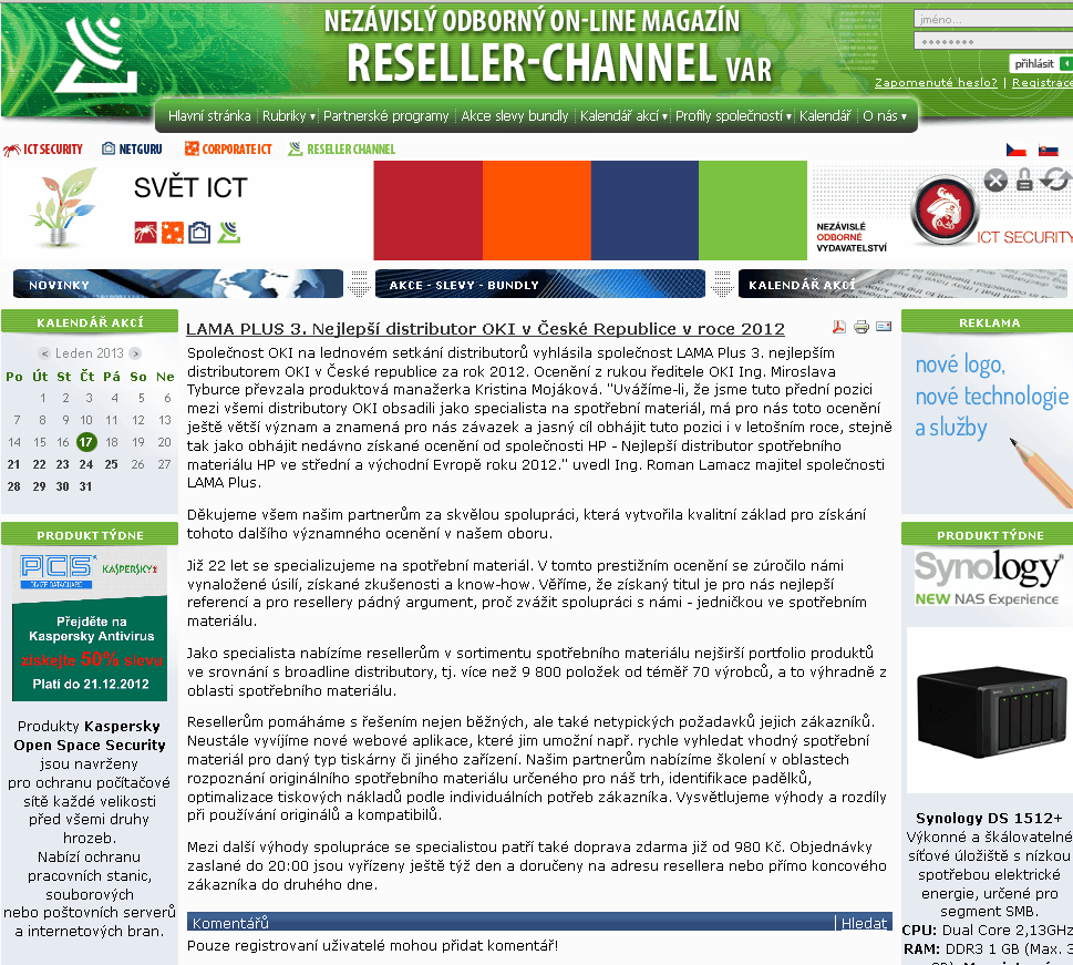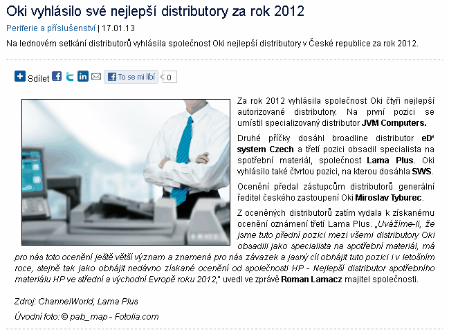 | 1/2013 - reseller-channel.cz - LAMA Plus 3. nejlepší distributor OKI v České republice v roce 2012 | Náhled (127kB) |