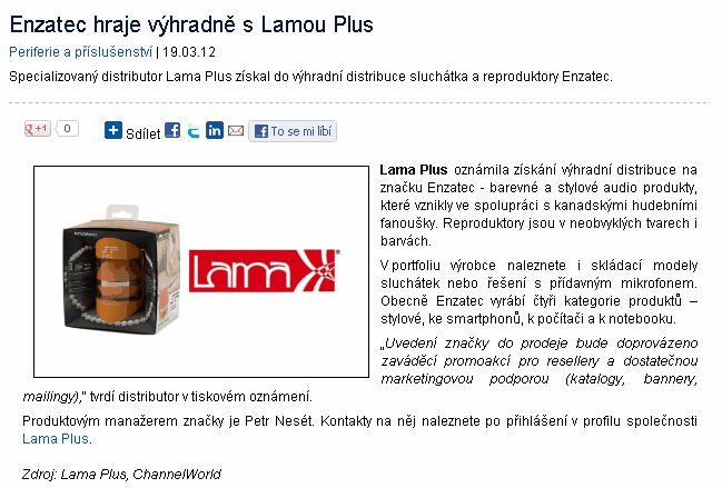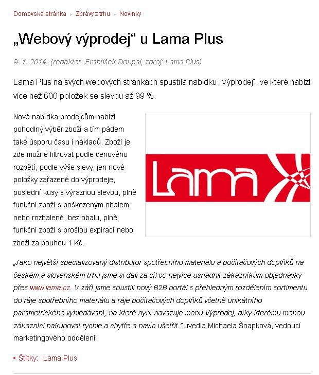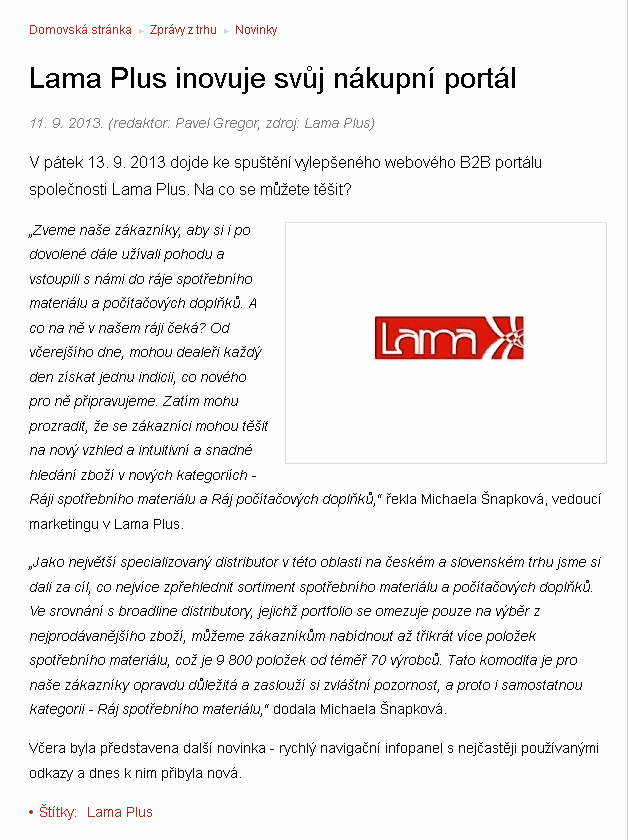 | 6/2012 - Channelworld.cz - Lama Plus vylepšila funkce svého e-shopu | Náhled (37kB) |