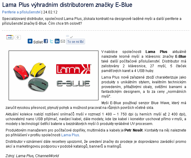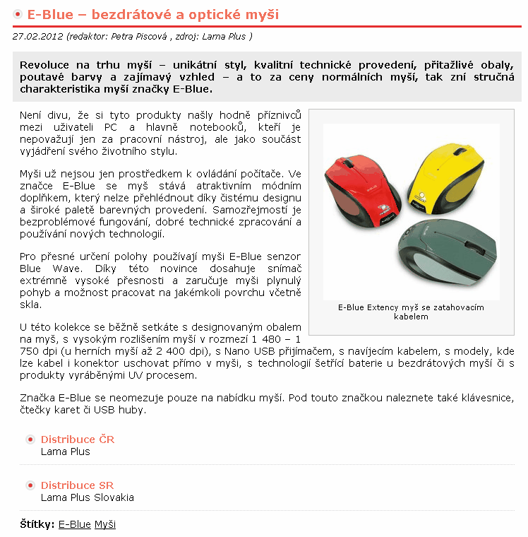 | 3/12 - Reseller online - E-Blue u Lama Plus - designové počítačové myši | Náhled (3MB) |