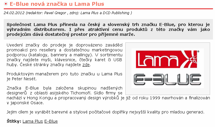 | 2/2012 - Reseller online - E-Blue nová značka u Lama Plus | Náhled (34kB) |