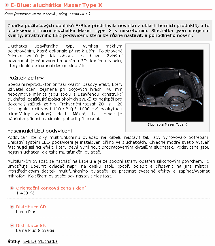 | 2/2013 - Reseller online - E-Blue: sluchátka Mazer Type X | Náhled (47kB) |