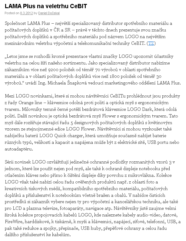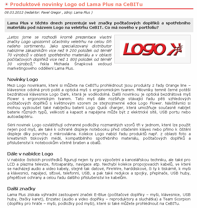 | 3/2012 - Feedit.cz - LAMA Plus na veletrhu CeBIT | Náhled (23kB) |