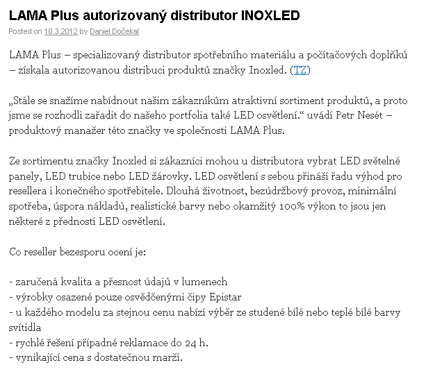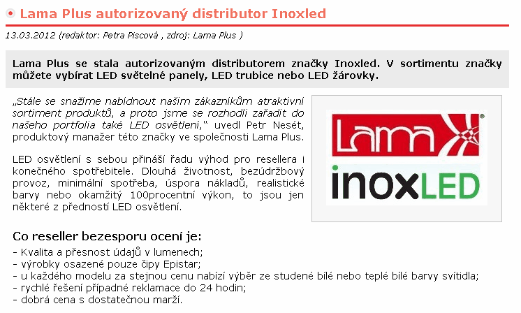 | 3/2012 - Reseller online - Lama Plus autorizovaný distributor Inoxled | Náhled (37kB) |