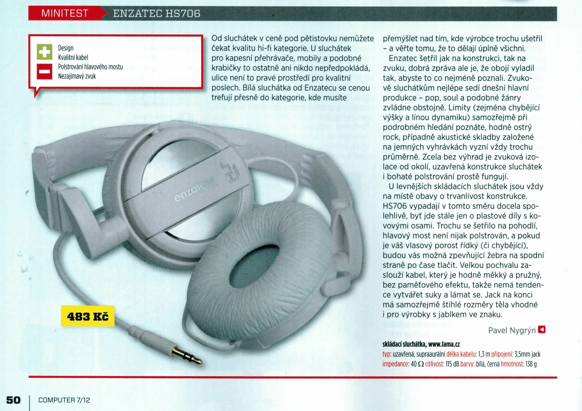 | 4/2012 - časopis Computer - Minitest sluchátek Enzatec | Náhled (2MB) |