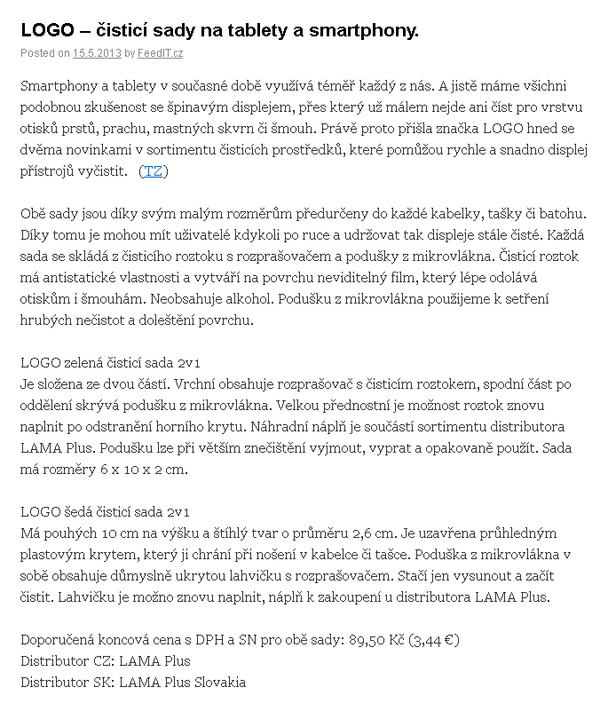 | 5/2013 - Feedit.cz - LOGO čisticí sady na tablety a smartphony | Náhled (20kB) |