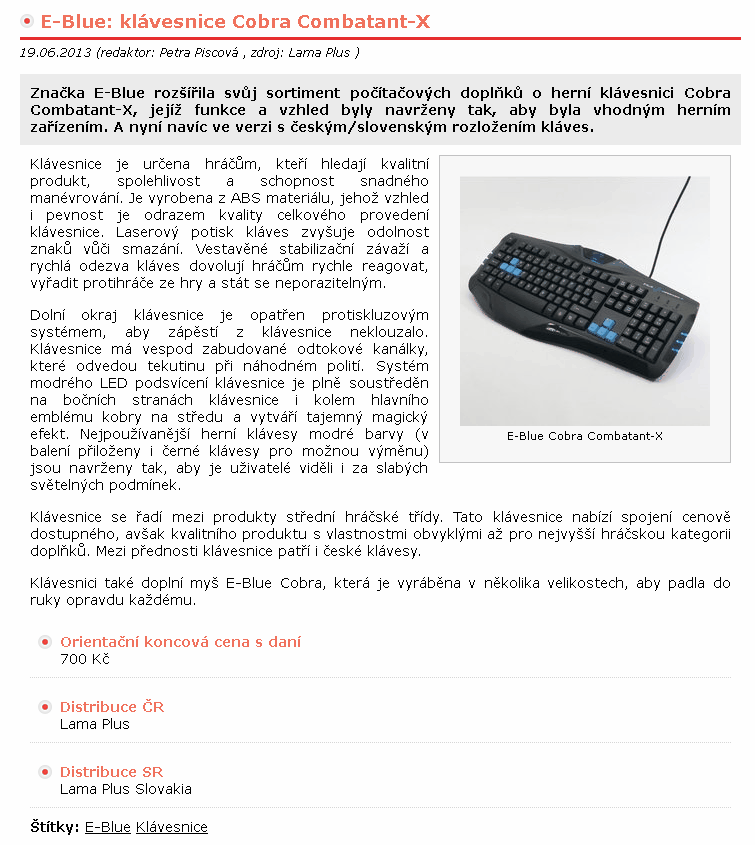 | 6/2013 - Reseller online - E-Blue: klávesnice Cobra Combatant-X | Náhled (56kB) |