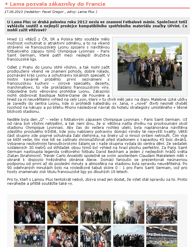 | 6/2013 - Feedit.cz - S LAMA Plus do Lyonu na Olympique Lyonnias a Paris Saint Germain | Náhled (36kB) |