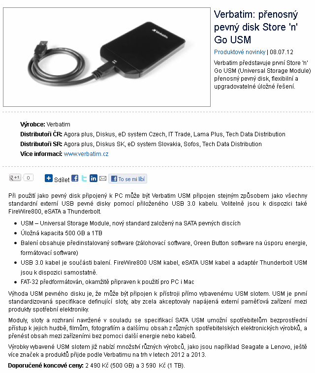 | 7/2012 - Channelworld.cz - Verbatim: přenosný pevný disk Store´n´Go USM | Náhled (44kB) |