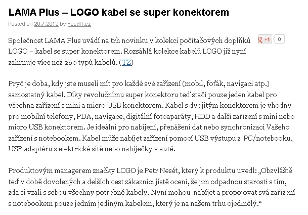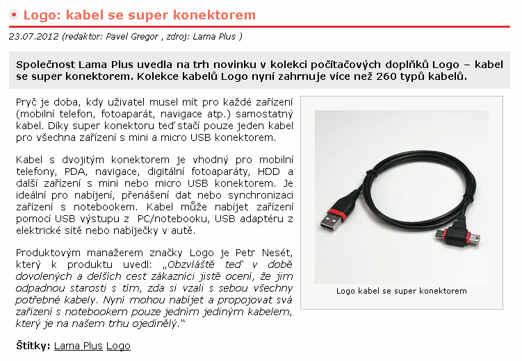 | 7/2012 - Feedit.cz - LAMA Plus - LOGO kabel se super konektorem | Náhled (129kB) |