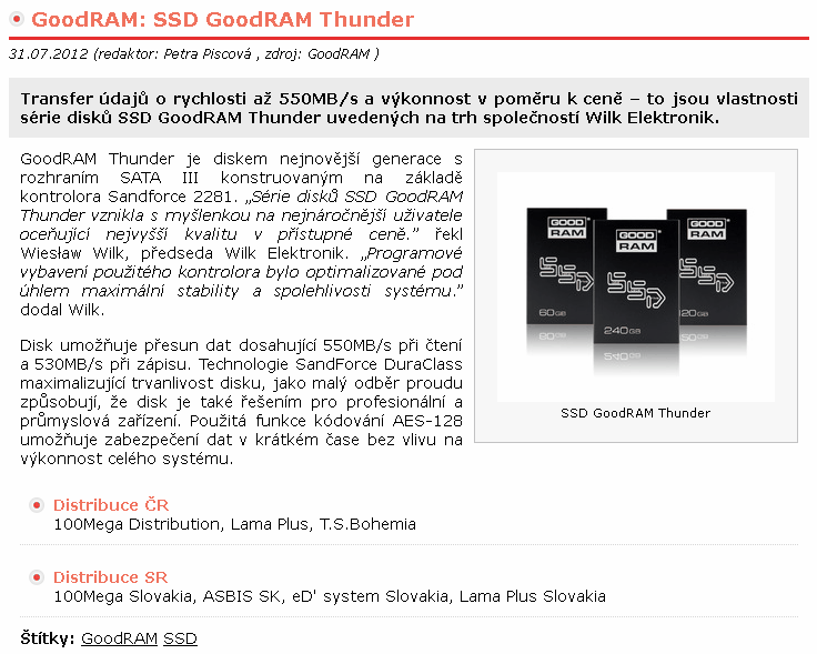 | 7/2012 - Reseller Online - GoodRAM: SSD GoodRAM Thunder | Náhled (38kB) |