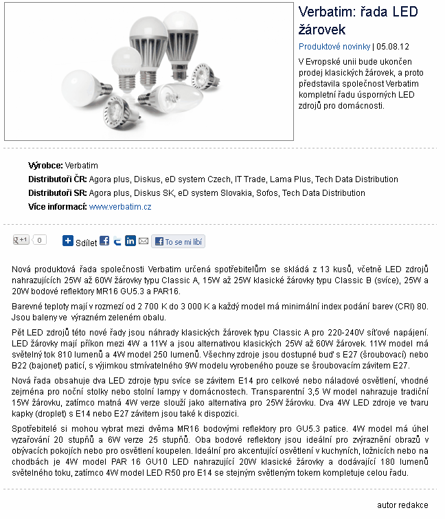 | 8/2012 - ChannelWorld.cz - Verbatim: řada LED žárovek | Náhled (45kB) |
