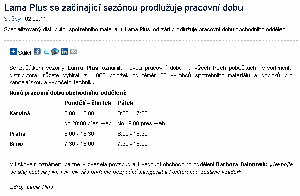 | 9/2011 - ChannelWorld.cz - Lama Plus se začínající sezónou prodlužuje pracovní dobu | Náhled (9kB) |