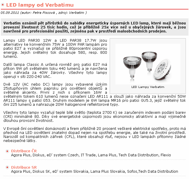| 9/2011 - Reseller online - LED lampy od Verbatimu | Náhled (30kB) |