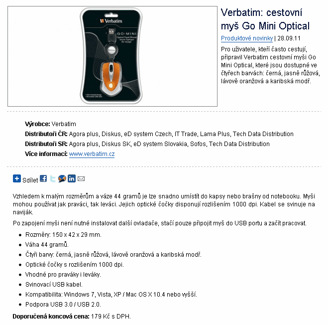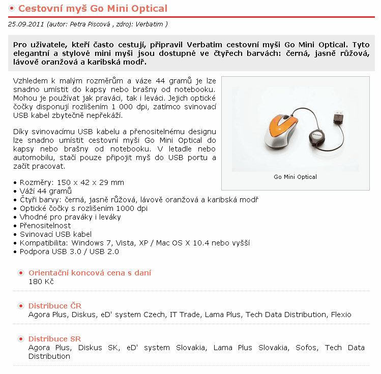 | 9/2011 - ChannelWorld.cz - Verbatim: cestovní myš Go Mini Optical | Náhled (37kB) |