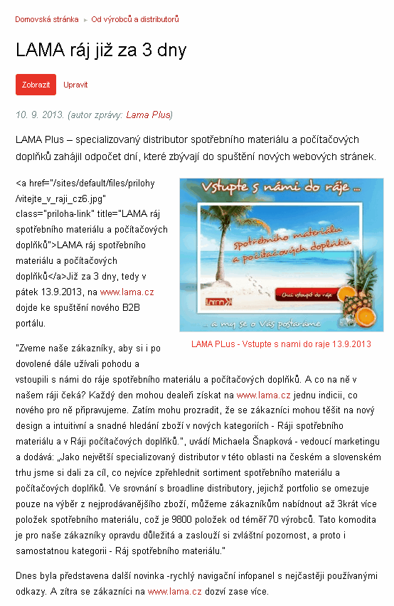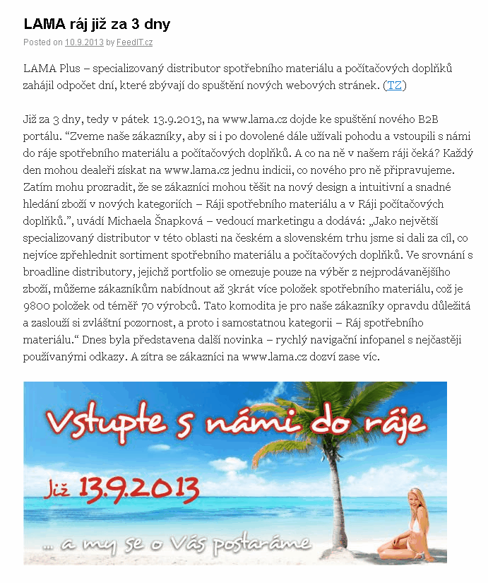| 9/2013 - Feedit.cz - LAMA ráj již za 3 dny | Náhled (97kB) |