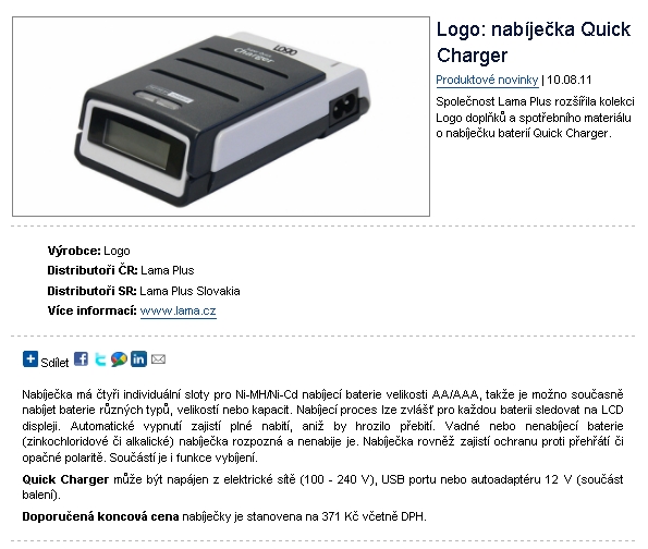 | 8/2011 - ChannelWorld.cz - Logo: nabíječka Quick Charger | Náhled (131kB) |